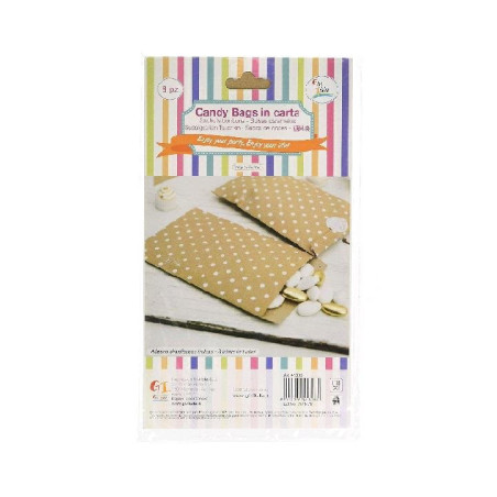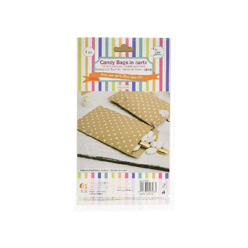 Sacchetti carta pz. 8 avana decori bianchi art.41306