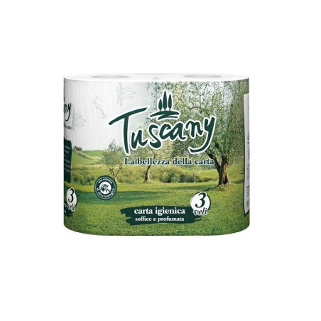 TUSCANY CARTA IGIENICA 3 VELI 4 ROTOLI 1000 STRAPPI PROFUMATA CELLULOSA
