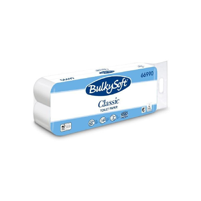 BULKY SOFT CARTA IGIENICA 2 VELI 10 ROTOLI 1600 STRAPPI PURA CELLULOSA