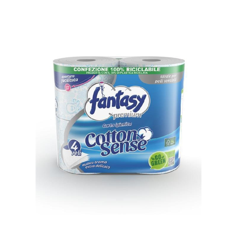 Fantasy carta igienica 4 veli 4 rotoli cottonsense 600 strappi