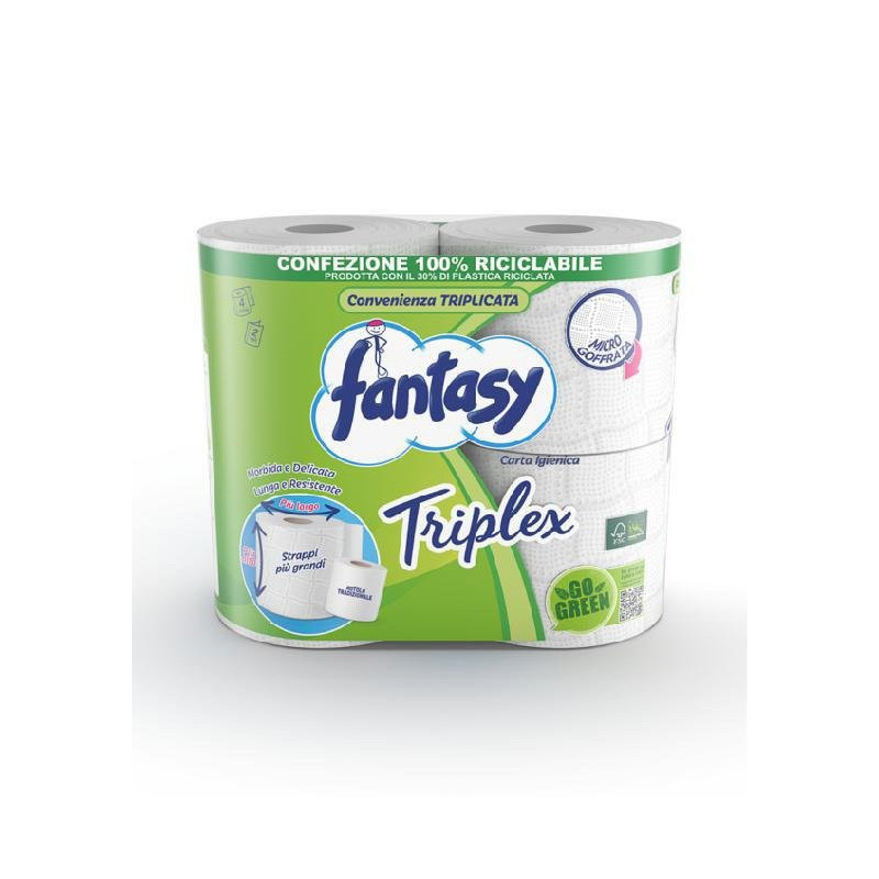 Fantasy carta igienica 2 veli 4 rotoli triplex 1200 strappi